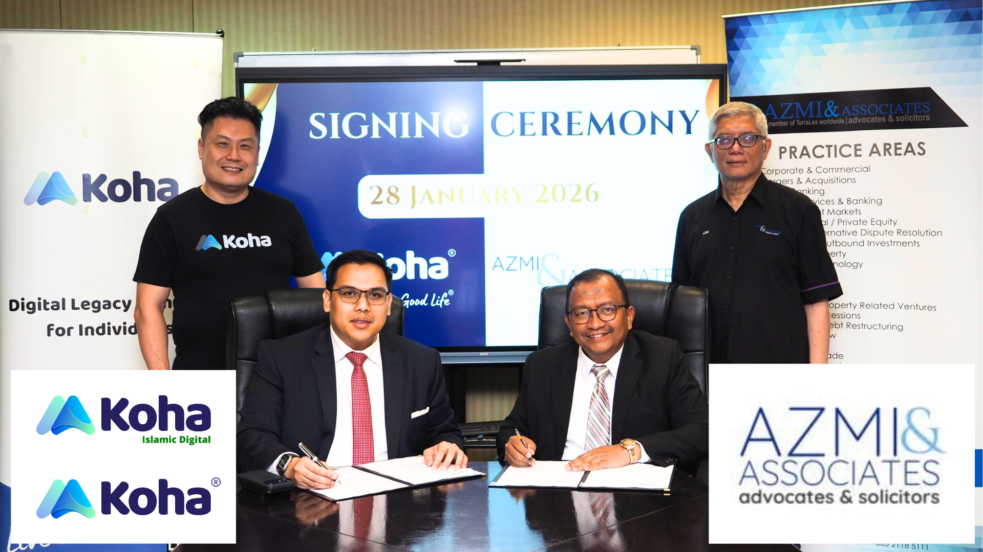 Kuala Lumpur, 28 January – Koha Digital and Koha Islamic Digital have officially entered into a strategic collaboration with Azmi & Associates, one of Malaysia’s largest and most prominent full-service law firms. Comprising 30 partners and over 100 lawyers & trainee solicitors, Azmi & Associates hosted the formal signing ceremony at their Head Office, marking a pivotal moment for digital legacy planning.